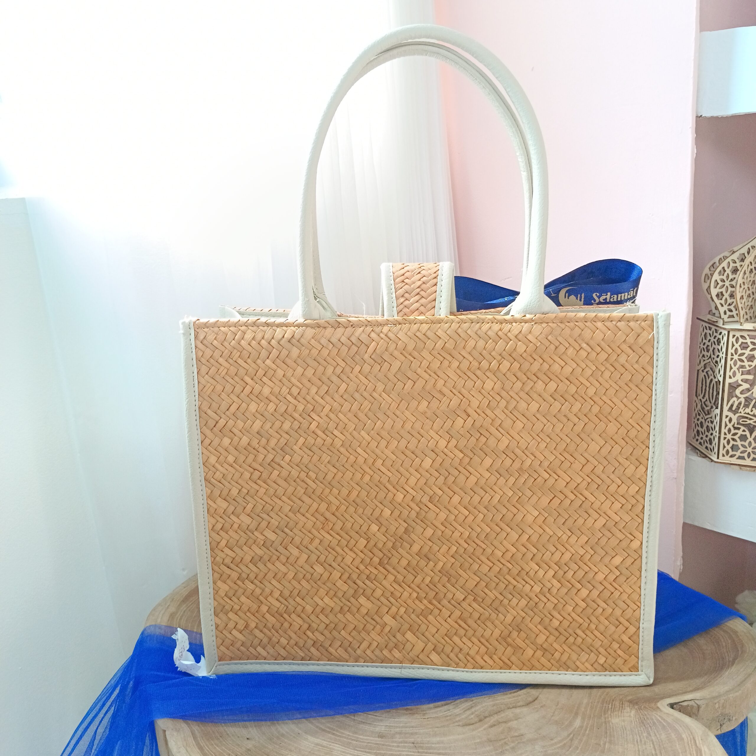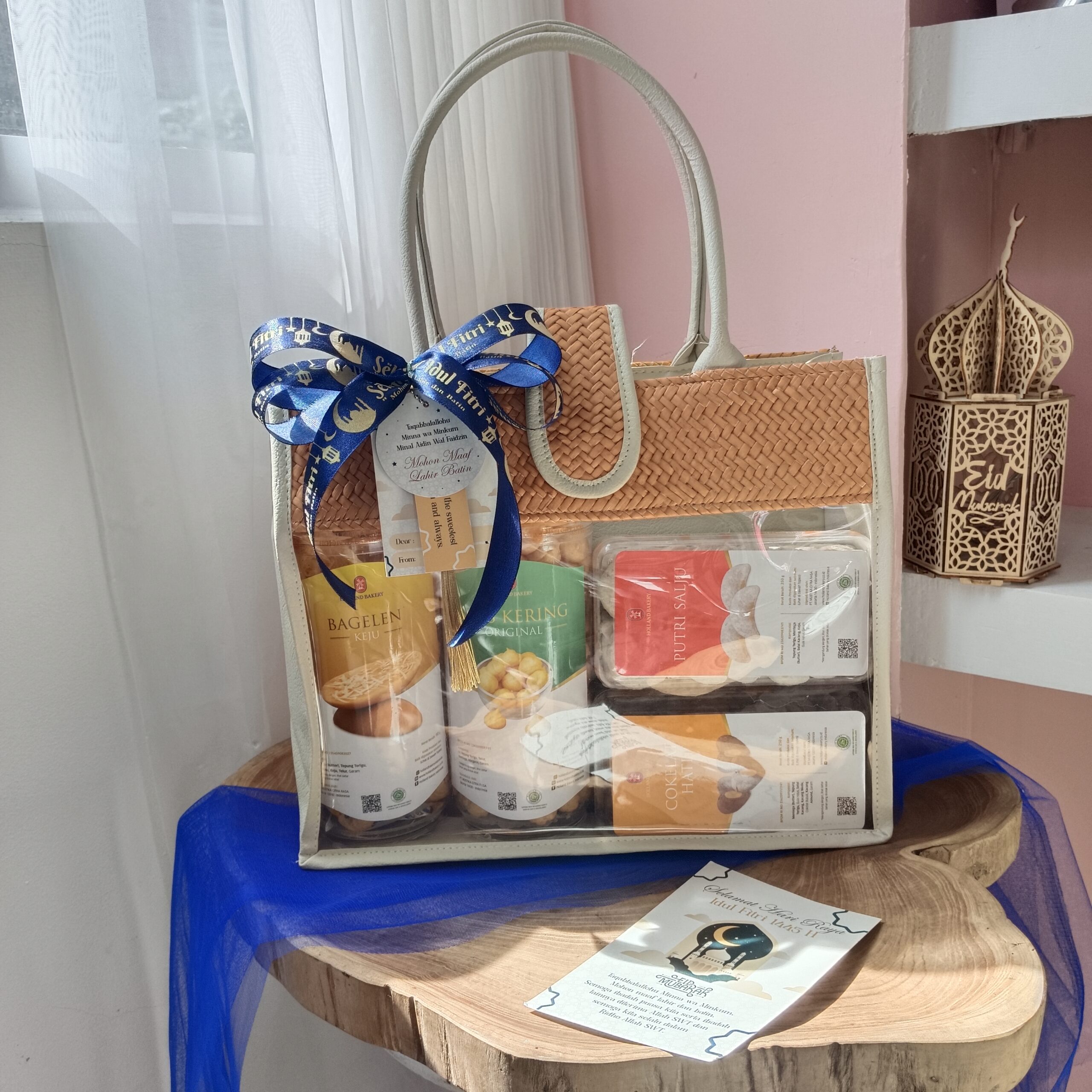 Hampers E dengan tas anyaman cantik dibagian depan dan belakang