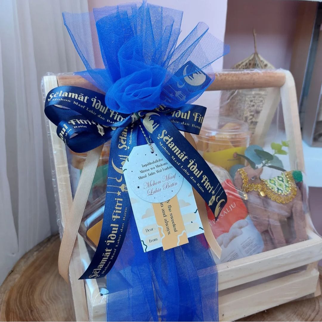 Hampers F dengan tray kayu yang kokoh dan hiasan boneka unta